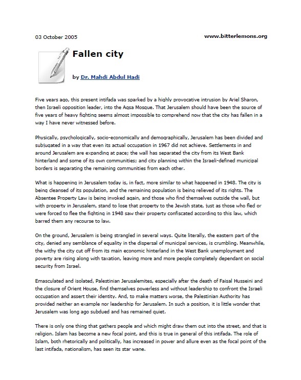 Documents On Palestine And Jerusalem (2006-2007)